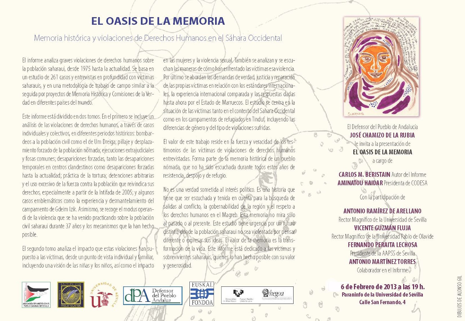 El Defensor del Pueblo Andaluz, José Chamizo de la Rubia, invita a la presentación del informe “El Oasis de la Memoria. Memoria histórica y violaciones de Derechos Humanos en el Sáhara Occidental”.