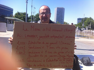 el periodista marroquí Ali Lmrabet, desde la mañana del miércoles, 24 de junio de 2015, en la Plaza de las